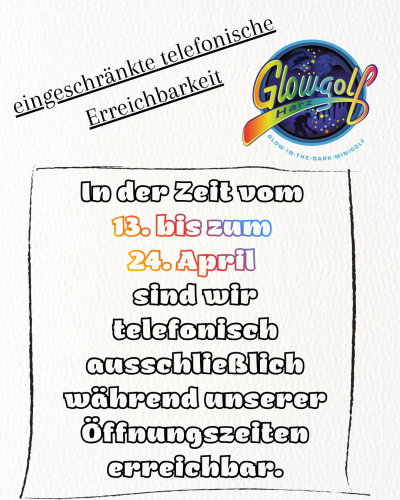 Hast du Fragen oder besondere Wünsche für dein nächstes Abenteuer beim Glowgolf? Nutze einfach das Kontaktformular um uns zu erreichen. Ob es um eine Buchung, eine Veranstaltung oder einfach nur um eine schnelle Auskunft geht – wir freuen uns darauf, von dir zu hören.